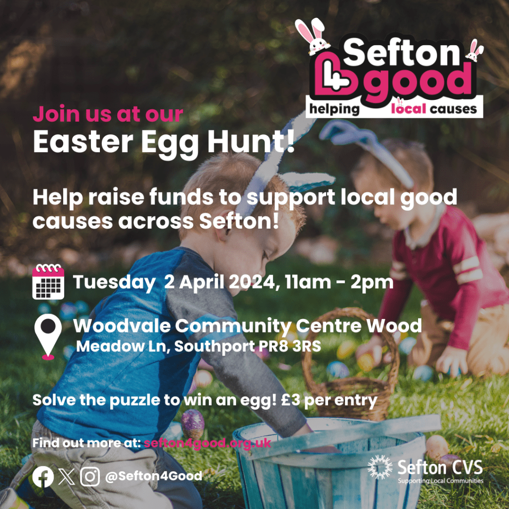 Support good causes in Sefton by attending Sefton 4 Good’s Easter hunt. Join the team in an eggciting adventure to solve the puzzle and win an egg!