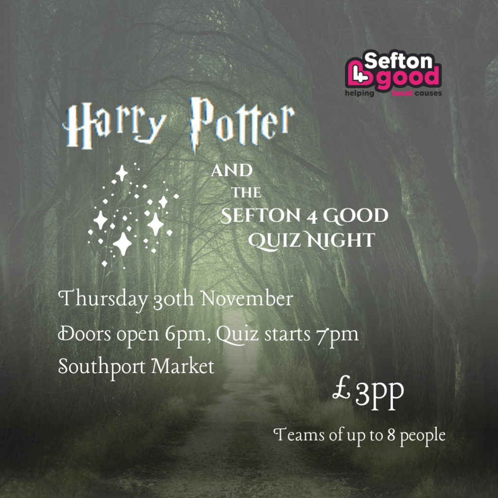 Calling all Muggles! Join Sefton 4 Good in Southport Market’s Great Hall for a magical family friendly quiz night.